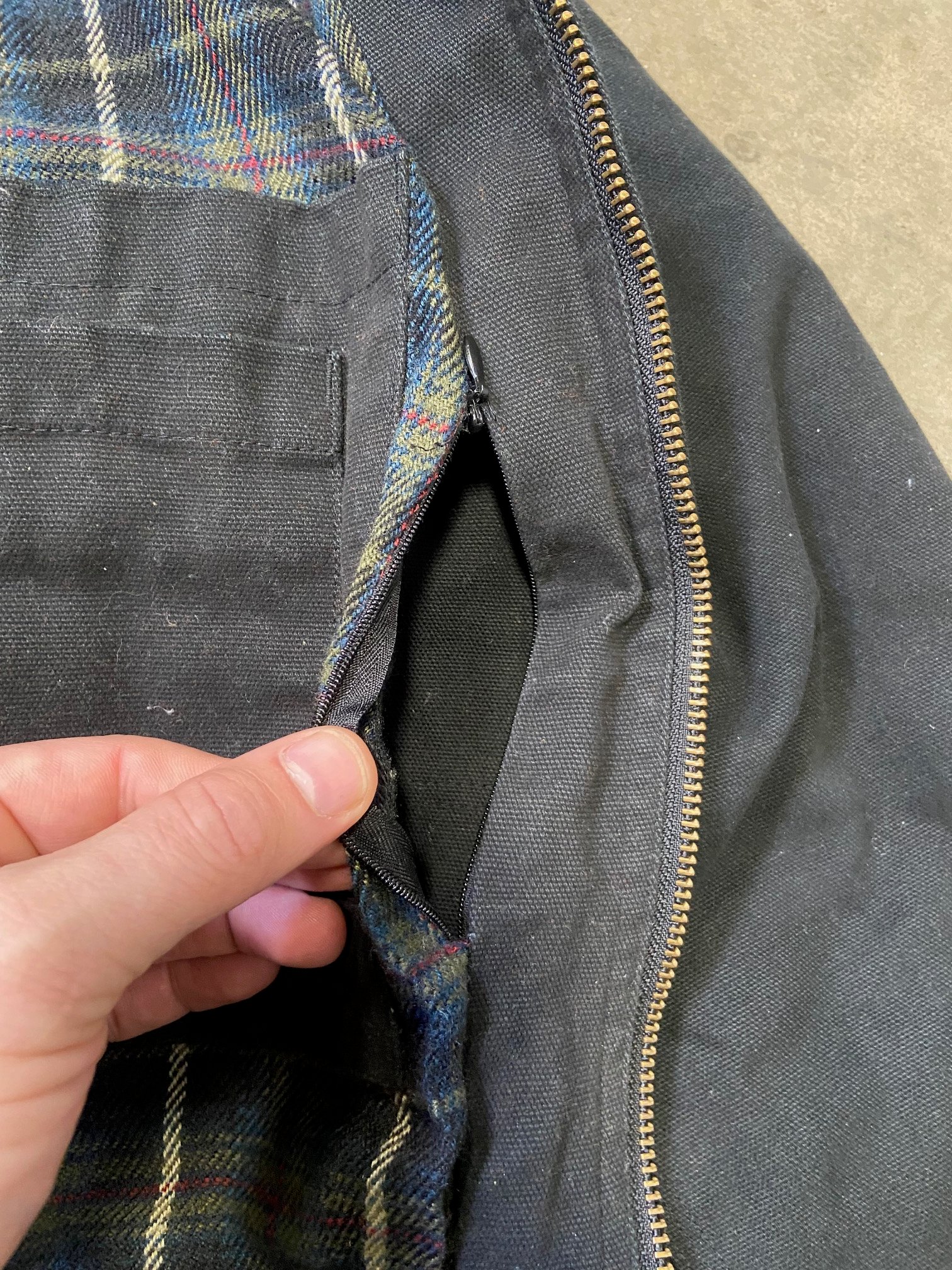 Just like my infamous riding vests, but with sleeves! These are perfect for strapping to your sissy bar for that brisk ride home after then sun has gone down. Canvas outer, flannel inner. Inside breast pockets, stash pocket, hand pockets, breast pockets. These fuckers will get the job done and last. These fit a little on the big side so that you can comfortably wear a hoodie underneath.