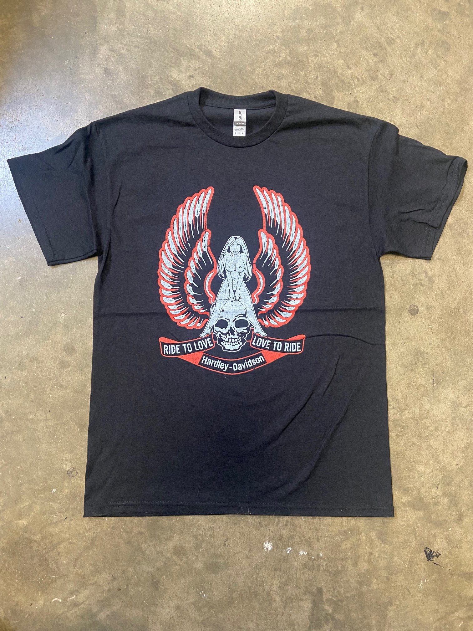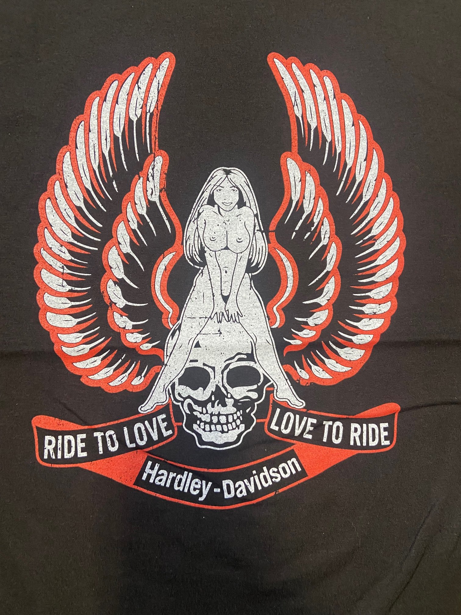 Hardley Davidson. Ridin' and lovin' bro. Full front, full back print.