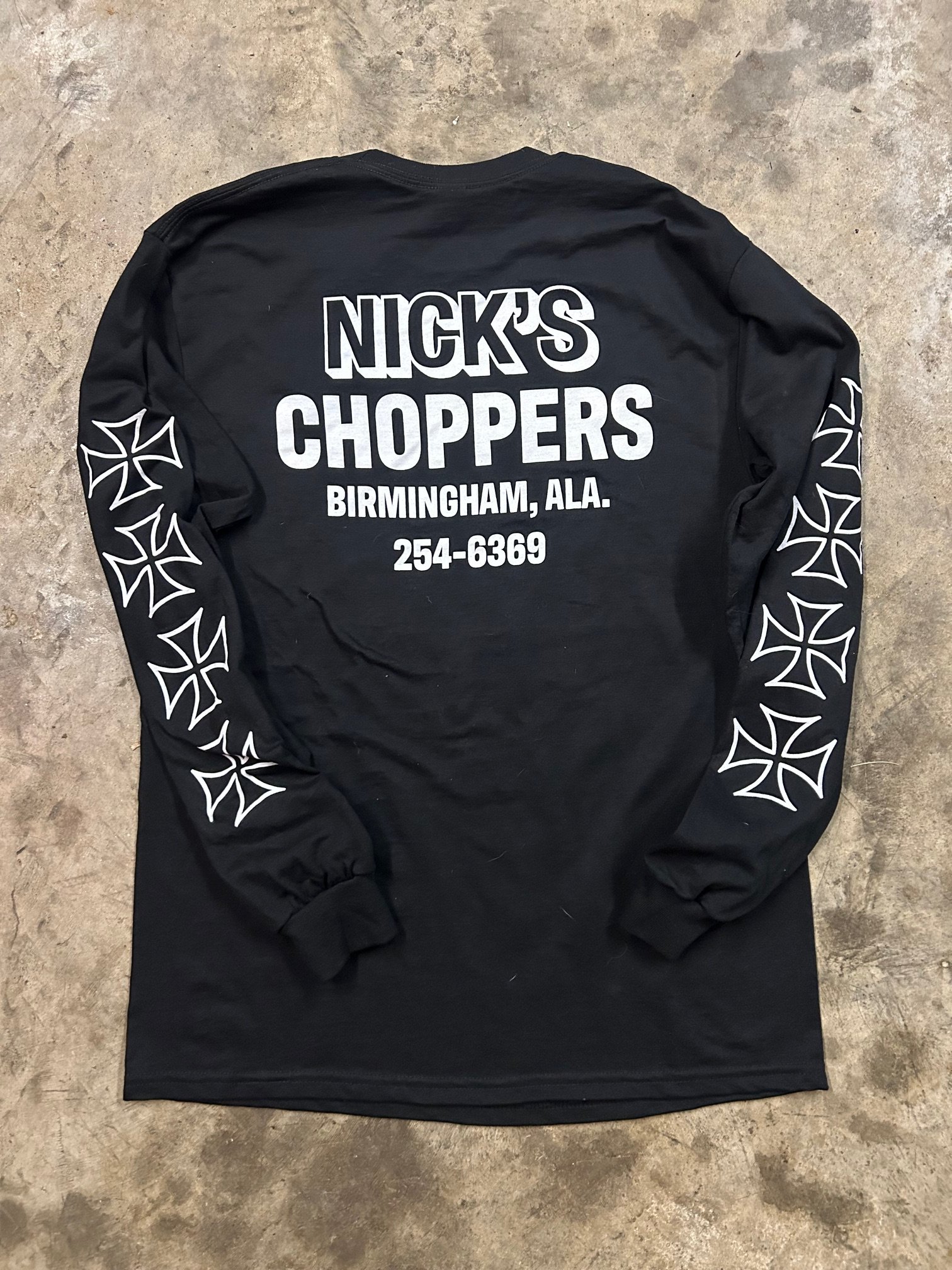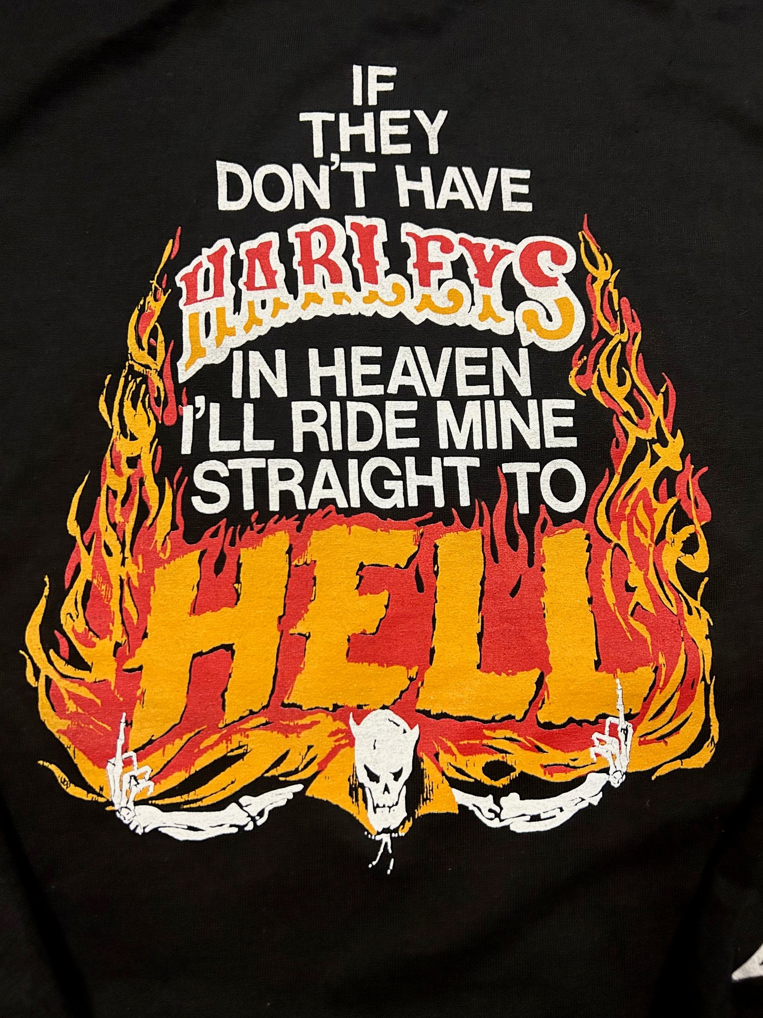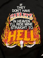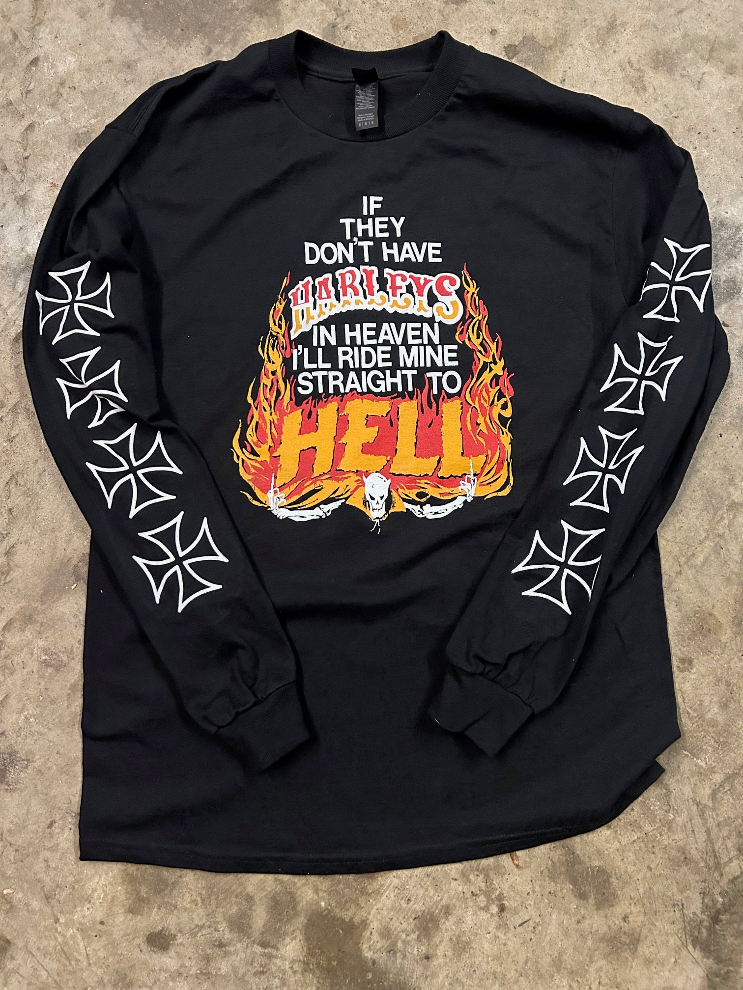 This front graphic is one that was used by independent HD shops back in the day, with my little twist on it. Full Front print, Full Back print, and both sleeves. Show em that you mean business.